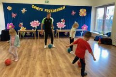 Naszym ekspertem był również trener piłki nożnej Pan Mariusz, który przybliżył dzieciom tę popularną dyscyplinę spotu.