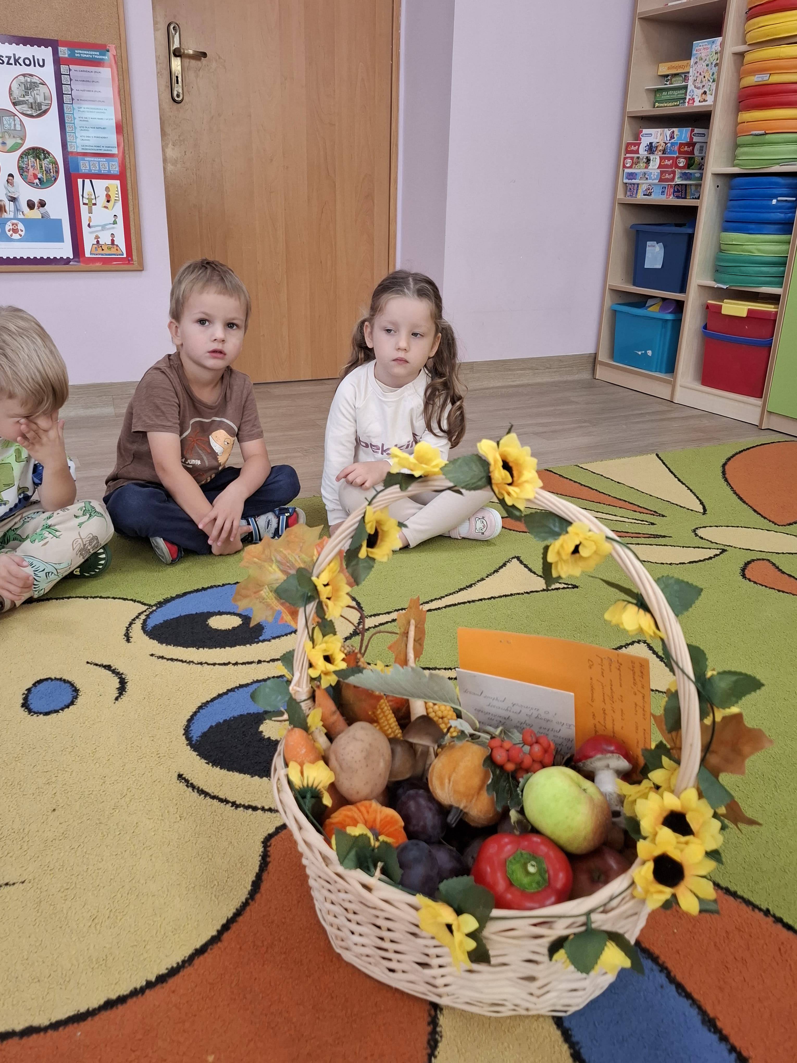 Przedszkolaki ze wszystkich grup szukały oznak jesieni w ogrodzie przedszkolnym oraz zbierały dary jesieni do przedszkolnych kącików przyrody.