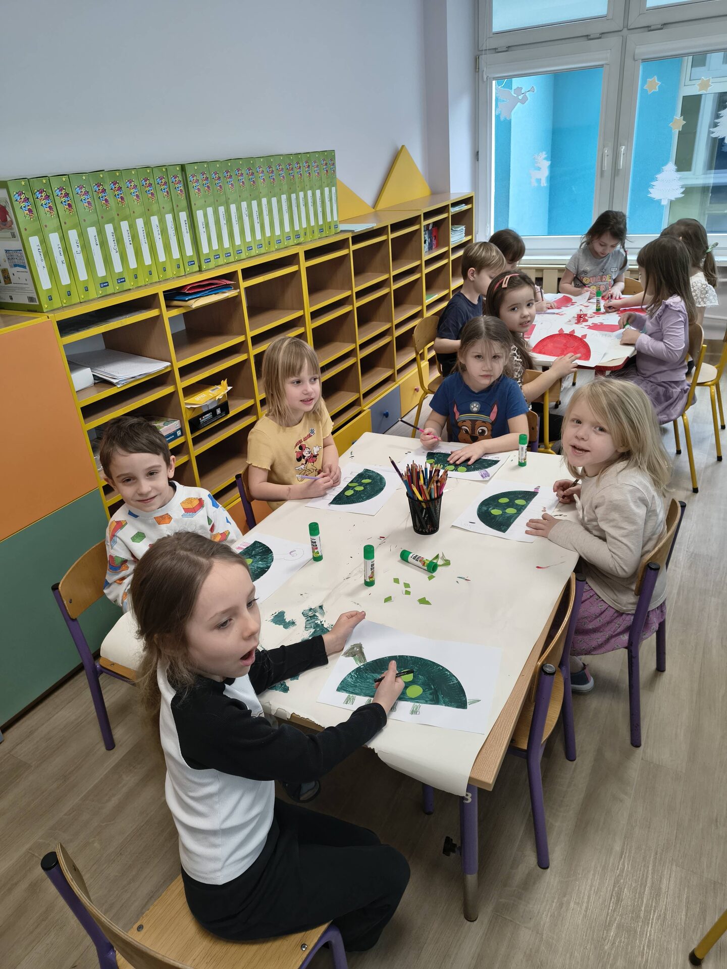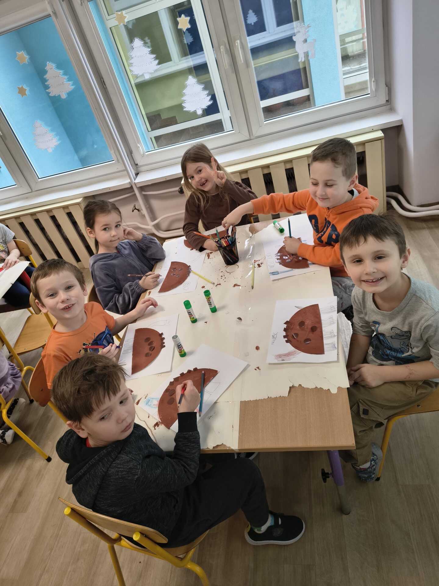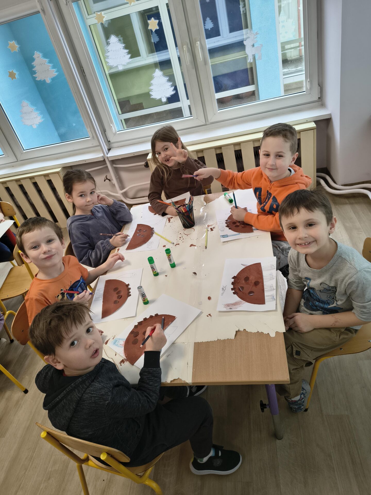 Podczas różnorodnych aktywności stworzyliśmy dzieciom świetną okazję do odkrywania i zgłębiania tajemnic prehistorycznego świata, a w szczególności dinozaurów, które fascynują nie tylko naszych milusińskich. Dzieci poprzez zabawę poznały zwyczaje i zachowania tych prehistorycznych gadów, dowiedziały się dlaczego dinozaury wyginęły, pobawiły się w paleontologów i stworzyły szkielet dinozaura, naśladowały sposób poruszania się tych zwierząt, przeliczały, badały, odkrywały zawartość dinozaurowych jaj i brzuchów, słuchały piosenek o dinozaurach. W każdej grupie wiekowej powstały przepiękne galerie prac, w których dzieci odzwierciedliły swoje wyobrażenie mieszkańca jurajskiego świata.