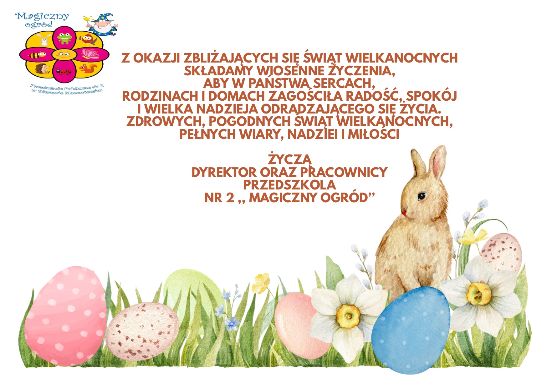 Przedszkolaki z „Magicznego Ogrodu” odwiedził wyjątkowy „Zajączek Wielkanocny”, który wręczył każdemu niespodziankę. Dzieci z ogromną radością powitały gościa, brały udział w rozmowach o tradycjach wielkanocnych. Nie zabrakło uśmiechów i świątecznej